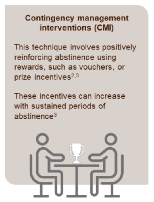 Qua nhiều năm, các chương trình duy trì methadone đã giúp hệ thống chăm sóc sức khỏe giảm bớt lượng tái nghiện bằng cách thưởng cho người bệnh một khi họ đạt được mục tiêu mong muốn. Trước kia, phần thưởng bao gồm quyền được mang thuốc về nhà. Đầu những năm 1990, một thay đổi đáng chú ý đã xảy ra với việc giới thiệu phần thưởng, điển hình là người bệnh bắt đầu nhận phiếu quà tặng đổi lấy mẫu nước tiểu không chứa ma túy. Phương pháp này mang lại hiệu quả trong việc giảm bớt việc sử dụng ma túy và cải thiện việc duy trì điều trị. Ngoài ra, việc cải tiến hệ thống phiếu quà tặng đi kèm với các hỗ trợ khác (ví dụ, đào tạo kỹ năng và tư vấn mối quan hệ) cũng dần mang lại lợi ích cho cả cai nghiện thuốc lá và tuân thủ việc dùng thuốc điều trị.